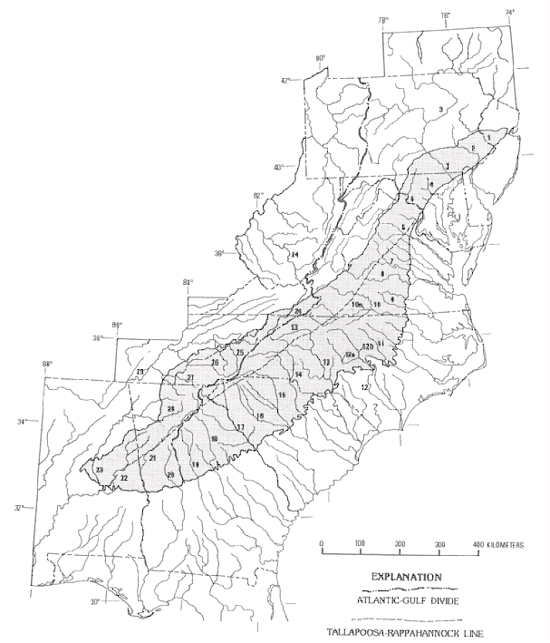 Major streams of the Appalachian Highlands