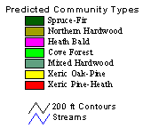 This community type map is intended to provide the reader with a visual representation of the landscape pattern of these communities. The map has not been field validated. The landform map was produced by Steve Simon (National Forests in NC, Asheville) an
