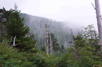 Photograph of the Mt. Mitchell area showing the condition of the spruce-fir forests.
