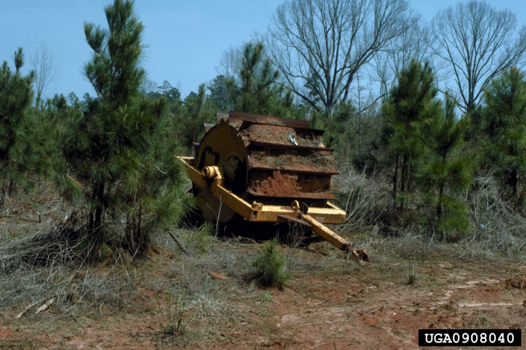 small drum chopper used to thin planted stand overstocked with natural regeneration